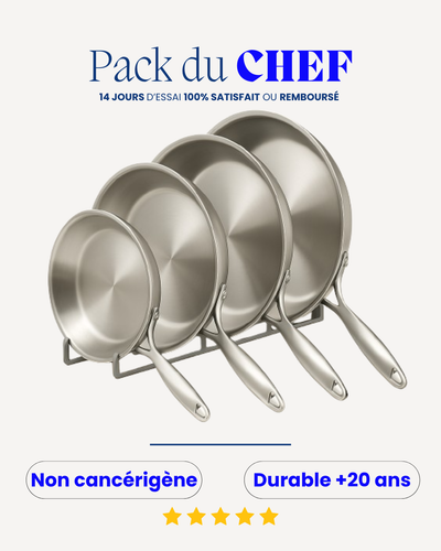 J’ai remplacé mes poêles en téflon et franchement, je me sens mieux. Pas de revêtement douteux, que de l’acier inoxydable, c’est plus safe pour moi.